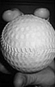 握り方は、人差し指と親指を結ぶ線が、ボールの中心を通るような感じです。